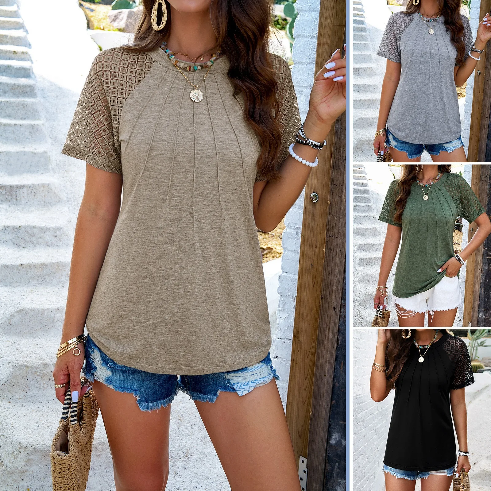 2026 Spring and Summer Women's Temperament Round Neck Short Sleeve Solid Color T-shirt